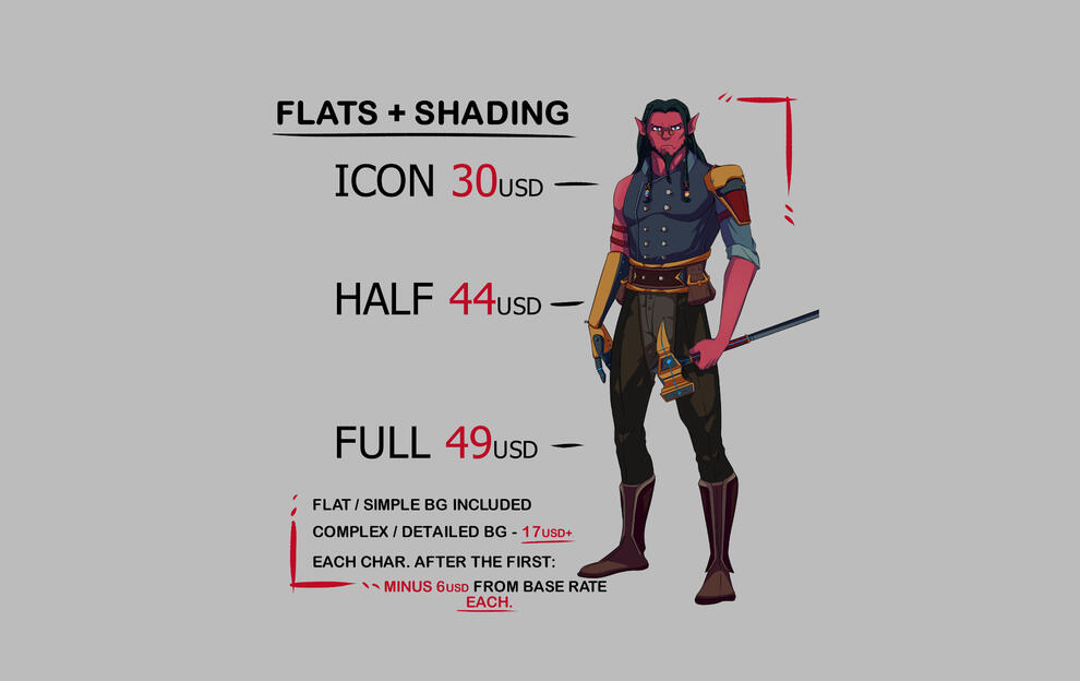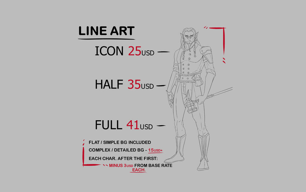When ordering this tier, you can expect everything from the Line Art piece but with vibrant colors and shadows.