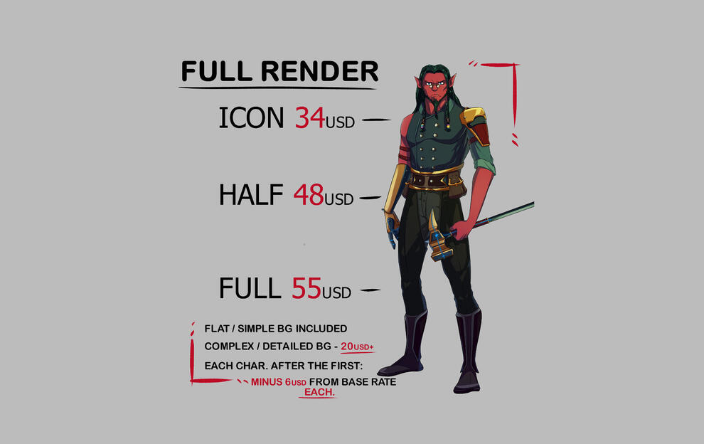 I WILL CHARGE EXTRA IF YOUR CHARACTER HAS:
